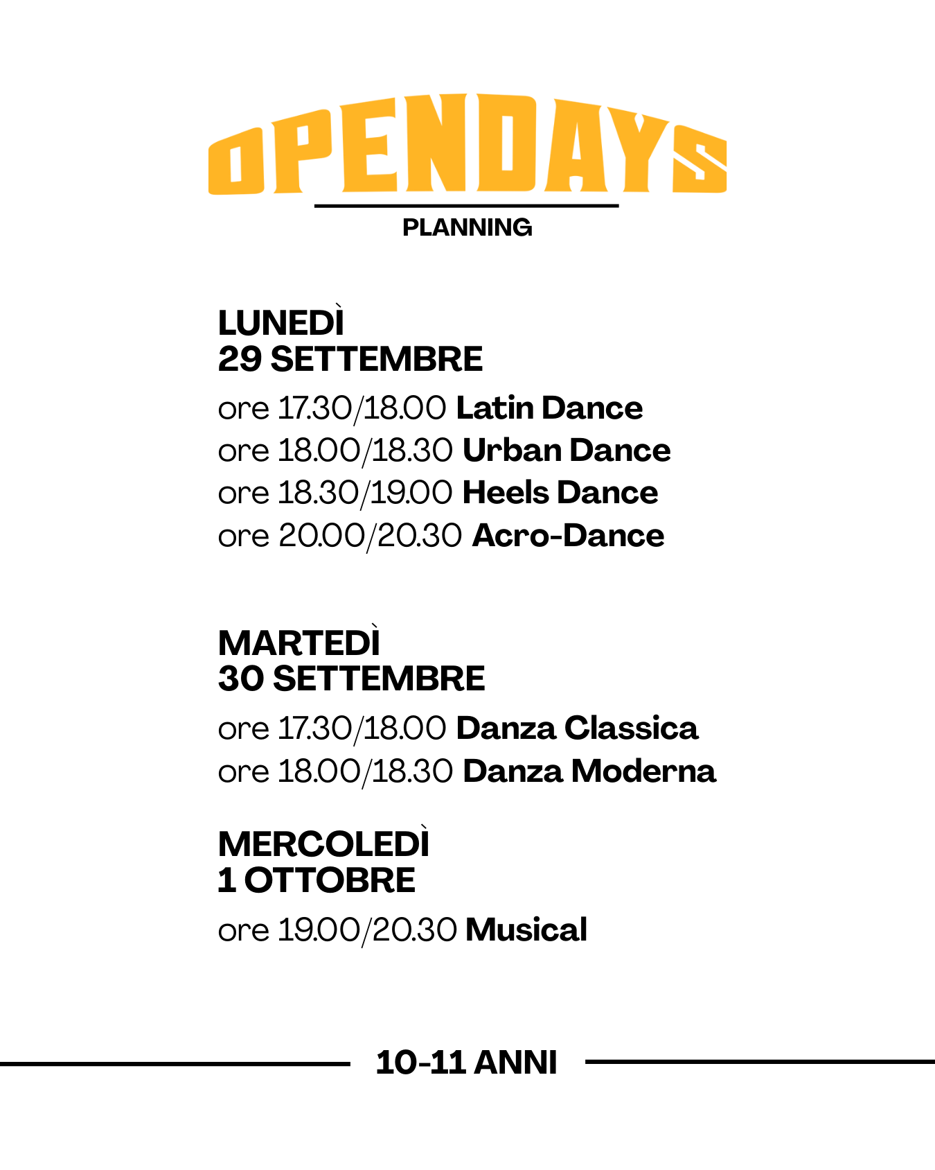 Gli Open Day sono l'occasione perfetta per provare una vera lezione e scoprire da vicino la qualità del nostro percorso formativo. Ragazzi e ragazze potranno sperimentare le discipline con mini-lezioni da 30 minuti e conoscere gli insegnanti che li accompagneranno nella crescita artistica.